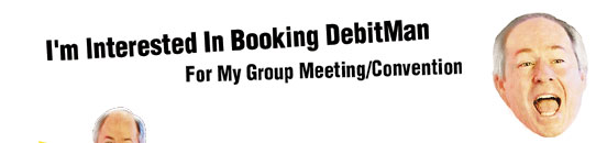 Frank "DebitMan" Page P.O. Box 2523 Windermere, FL 34786 1-877-DebitMan or if you can't figure it out 1-877-332-4862 Back to home page © Copyright 2009